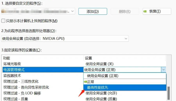2. 檢查顯卡,雖然游戲畫風(fēng)寫實(shí),對顯卡的調(diào)用卻堪稱玄學(xué)。3070在默認(rèn)設(shè)置下經(jīng)?!把b死”,GPU占用率長期徘徊在30%,關(guān)鍵時刻突然飆到100%引發(fā)畫面撕裂。N卡用戶要在NVIDIA控制面板中,為《斷箭》單獨(dú)設(shè)置“最高性能模式”。其次可以關(guān)閉游戲內(nèi)垂直同步,改用NVIDIA的“快速垂直同步”。