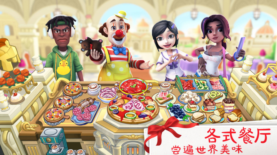 讓玩家既能當老板開餐廳,又能做廚師烹飪美食,還能給角色換裝打扮。玩家的任務是建起一家頂級餐廳,給客人們送上美味佳肴,感受做飯的快樂,全球的美食都能在玩家的指尖呈現(xiàn)。每解鎖一家新店,玩家的廚藝就更厲害,完成關卡還能拿到獎勵,用來裝修玩家的餐廳。玩家不僅能享受做飯的樂趣,還能遇到很多有趣的角色。