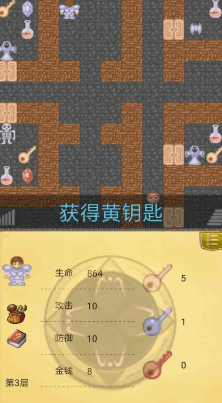 你將指揮一位勇敢的小戰(zhàn)士,攀登一座高聳入云的魔塔,這座塔共有50層,每一層都布滿了骷髏守衛(wèi)。為了突破重重阻礙,勇者必須一一擊敗這些守衛(wèi),才能向著塔頂邁進(jìn)。在探索的過(guò)程中,勇者還能在各層中發(fā)現(xiàn)并收集各種武器和盾牌,這些裝備將是戰(zhàn)勝敵人的關(guān)鍵。