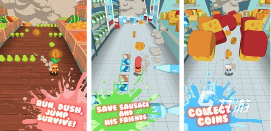 美食和創(chuàng)新式的跑酷玩法相碰撞,將給大家?guī)砹藰O強的視覺沖擊力,此游戲以美味的香腸為主要角色,這根香腸將會奔跑在到處都是危機的賽道上,比如沿途會有各種美味的水果或者是各種瓶瓶罐罐等等。遇到各種障礙物時,及時跳躍躲避或左右滑動屏幕合理走位,還要收集沿途的大量金幣,提升個人等級。