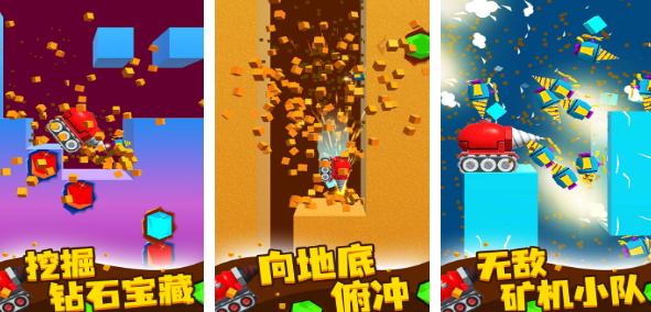 挖礦機(jī)種類豐富,玩家可在系統(tǒng)中更改機(jī)身的顏色以及鉆頭的馬力,也可以在后續(xù)使用獲得的礦產(chǎn)資源兌換更強(qiáng)大的挖礦機(jī)。挖礦地圖豐富,相較于金磚資源,玩家可以獲得更多的寶石。在獨(dú)特機(jī)制下,玩家可使用寶石進(jìn)行一定比例的金幣兌換。在資源累積后期,玩家還可以將挖礦機(jī)升級(jí)到巨大形態(tài)。