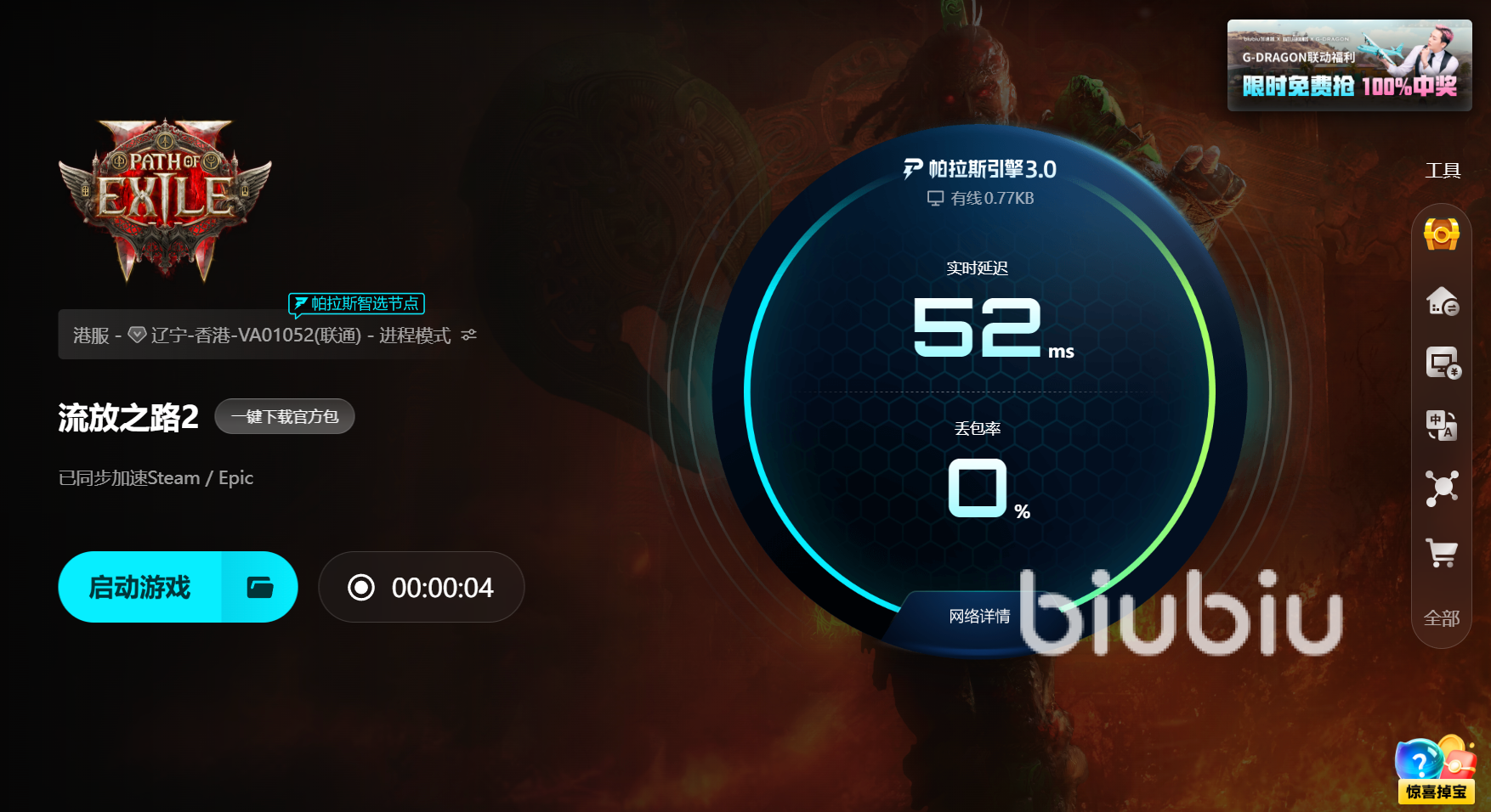 biubiu加速器搭載的帕拉斯引擎3.0具備實(shí)時(shí)網(wǎng)絡(luò)感知能力,可動(dòng)態(tài)選擇最優(yōu)線路并監(jiān)控其穩(wěn)定性。當(dāng)主線路出現(xiàn)丟包或波動(dòng),系統(tǒng)會(huì)毫秒級(jí)切換至備用線路,防止延遲激增造成的卡死、掉線或操作延時(shí)。作為biubiu體驗(yàn)官,FPS冠軍Aixleft深度參與調(diào)優(yōu),將比賽中對(duì)響應(yīng)速度、畫(huà)面穩(wěn)定的嚴(yán)格要求嵌入方案,使節(jié)點(diǎn)選擇和線路切換更符合職業(yè)賽場(chǎng)水準(zhǔn),使整體方案更加貼近電競(jìng)級(jí)體驗(yàn),讓普通玩家也能享受到接近職業(yè)比賽環(huán)境的順暢感受。使得biubiu在面對(duì)《流放之路2》這種高實(shí)時(shí)數(shù)據(jù)同步的游戲時(shí),依舊能保持穩(wěn)定,幫助玩家專(zhuān)注于戰(zhàn)斗、搭配BD和收集裝備,而不是被頻繁掉線打斷。