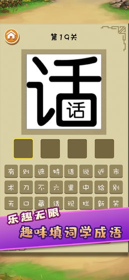 這是一款好玩有趣的益智類游戲,看圖猜成語(yǔ)即可,點(diǎn)出題目中的中心點(diǎn),能間接考驗(yàn)小伙伴的詞匯儲(chǔ)備量,還可以學(xué)到很多新的成語(yǔ),勞逸結(jié)合,在玩中學(xué),在學(xué)中玩。