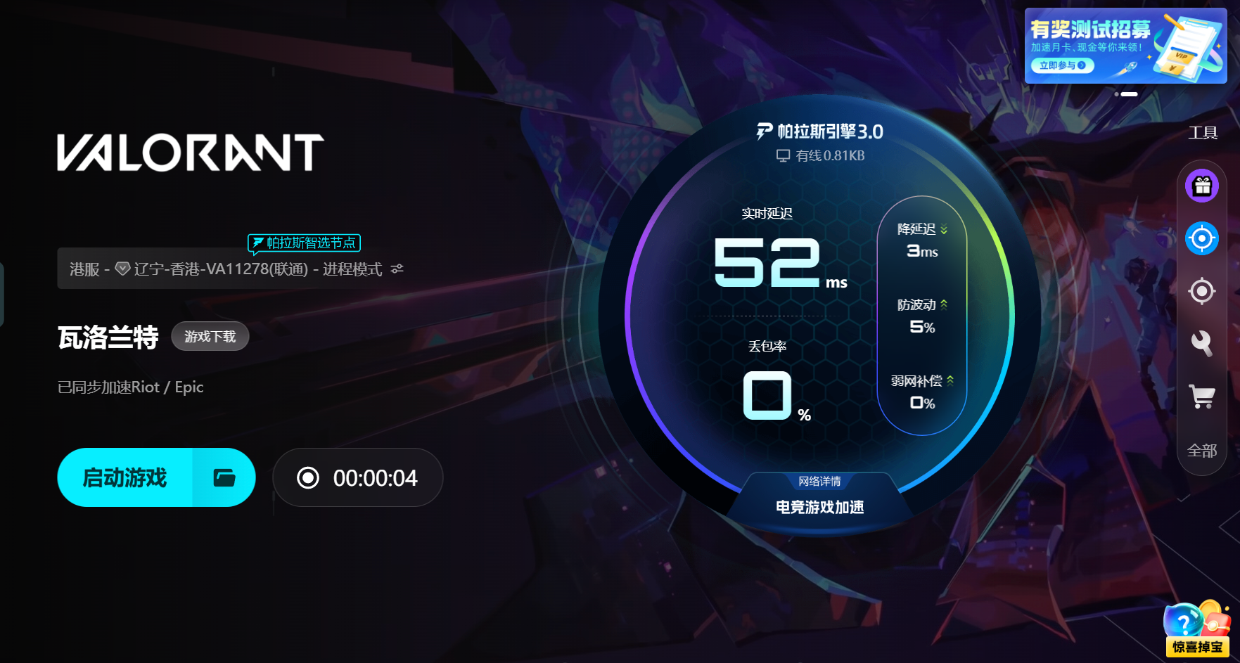 在技術(shù)層面,biubiu加速器已全面接入帕拉斯引擎3.0。它能實(shí)時(shí)檢測(cè)所有用戶的網(wǎng)絡(luò)環(huán)境,動(dòng)態(tài)分配延遲最低的線路,并在鏈路擁堵或波動(dòng)時(shí)快速切換,避免因丟包或延遲驟增導(dǎo)致卡頓。與傳統(tǒng)的固定線路方式不同,帕拉斯引擎3.0強(qiáng)調(diào)動(dòng)態(tài)調(diào)度和自適應(yīng)優(yōu)化,即便在跨區(qū)匹配或高并發(fā)的對(duì)戰(zhàn)場(chǎng)景中,也能持續(xù)保持穩(wěn)定表現(xiàn)。FPS冠軍Aixleft以biubiu體驗(yàn)官角色參與,他將自己在賽場(chǎng)上積累的低延遲和高穩(wěn)定性經(jīng)驗(yàn)直接應(yīng)用到方案中,使加速器即使在瓦羅蘭特這種高度依賴即時(shí)響應(yīng)的競(jìng)技游戲中,依舊能保持可靠發(fā)揮。無(wú)論是快速對(duì)槍還是團(tuán)隊(duì)配合,都能得到更穩(wěn)定的網(wǎng)絡(luò)保障。
