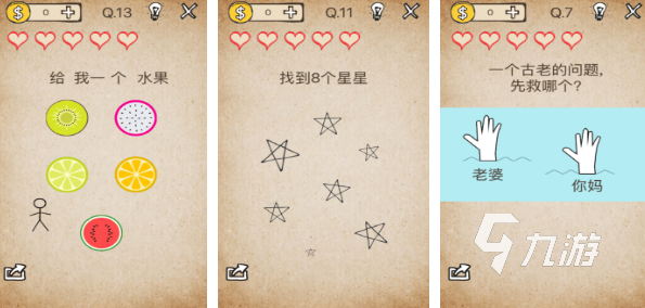 《史上最坑爹的游戲11》可以說(shuō)制作組已經(jīng)在引導(dǎo)用戶在坑爹的道路上越走越來(lái),越來(lái)越惡搞。當(dāng)然了,既然是繼承前作,其玩法也沒(méi)什么多大的變化,都需要你在過(guò)程當(dāng)中放棄固定的思維。每一關(guān)的通關(guān)方式都不一樣,或直接點(diǎn)擊屏幕、或移動(dòng)屏幕當(dāng)中的文字,亦或是搖晃手機(jī)...總之,具體的方式還是要玩家自己去一步一步探索。
