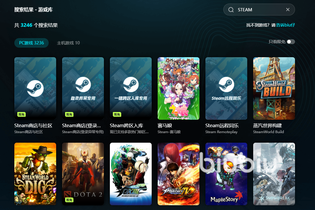 除此之外,biubiu暑期限免活動到8月24日結(jié)束,每天多款游戲直接開啟限免,現(xiàn)在已經(jīng)有千款游戲加入過限免名單,了解哪些游戲還正在限免,可在客戶端首頁專題頁面查看。