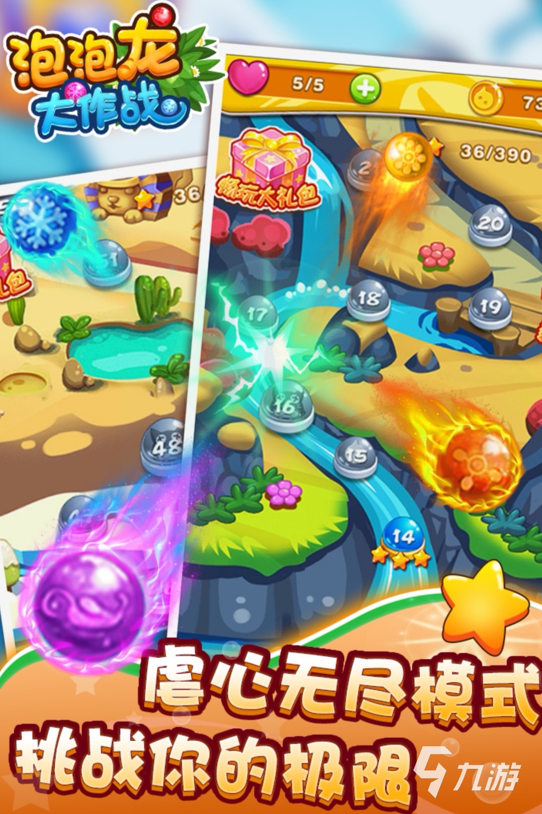 這里有各種各樣難解的泡泡謎題關(guān)卡,玩家需要充分發(fā)明才智,才能成功通過關(guān)卡。在消除泡泡的時候會有閃電的消除特效,你可以在其中體驗(yàn)絢麗消除的感覺。全新升級的關(guān)卡等著你來挑戰(zhàn),各種萌寵大戰(zhàn)歡樂來襲。