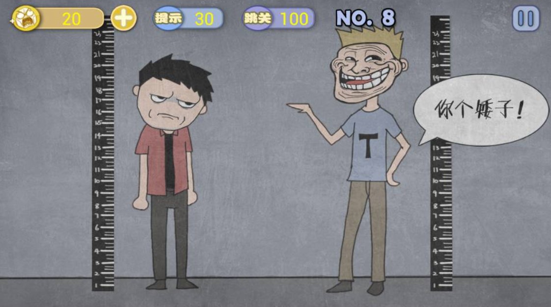 想說(shuō)打法方面的問(wèn)題?小編只能提醒大家一句:如果跟著它的提示走,那么你就輸了,你以為圖中賤賤的主角會(huì)如此用心良苦的把真實(shí)的答案告訴大家嗎?只有和它的思路反向思考,你才有可能找到出路,但是千萬(wàn)不要想得太復(fù)雜喲,畢竟它不是一款純粹的益智游戲,或者說(shuō)它主要是一款惡搞類的游戲,但是玩起來(lái)會(huì)覺(jué)得忍俊不禁,當(dāng)你卡在一關(guān)過(guò)不去最后知道怎么度過(guò)之后會(huì)有一種豁然開朗的感覺(jué)和奇妙體驗(yàn)。