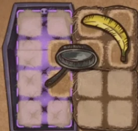 玩家可以調(diào)整一下平底鍋的擺放方向,將它擺入格子當(dāng)中,建議放在中間位置,然后將食物或護(hù)甲等一些道具擺放在平底鍋的周?chē)?。比如可以把香蕉放在平底鍋的右上方,不僅能夠完美的占據(jù)剩余的格子,而且也可以將戰(zhàn)斗力提升。