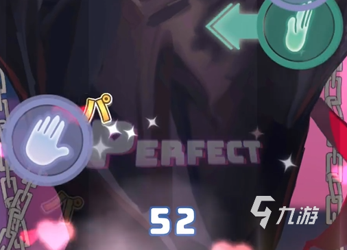 其中藍(lán)色的巴掌它代表的是短節(jié)拍,大家可以直接點(diǎn)擊,它也是屏幕中最多出現(xiàn)的一個節(jié)拍了,紫色的代表長按,一旦在屏幕中出現(xiàn)該按鈕的時候,大家必須要及時點(diǎn)擊,并不松手長按,等到它消失,屏幕中出現(xiàn)加積分的樣式,就代表點(diǎn)擊成功。