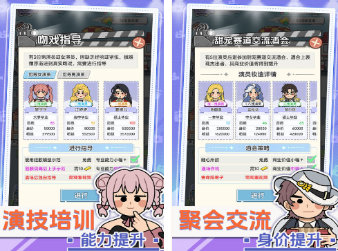 這款與現(xiàn)實(shí)生活中比較火爆的短劇有關(guān)的,將會(huì)讓玩家置身于這一個(gè)行業(yè)當(dāng)中,也是畢業(yè)于影視學(xué)院導(dǎo)演系的人物,為了憑借著自己不斷的拍攝短劇,擁有更高的收入,需要經(jīng)營一家演藝公司,不斷的招募各種演員,然后拓展他們的戲路,增加知名度,擁有更高的商業(yè)價(jià)值,融合了對演員的培養(yǎng)以及公司設(shè)施的建設(shè)等。