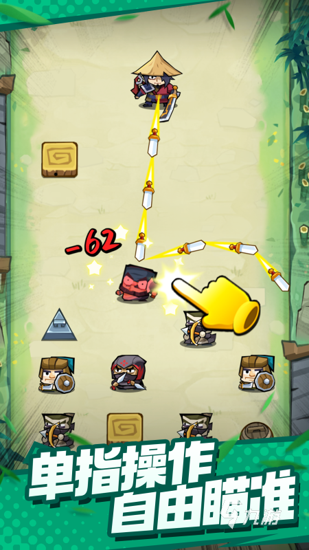 游戲的畫面采用的是武俠的風格,各種各樣的武俠Q版的人物形象。然后玩家的主要操作,就是利用自己的彈一彈技能,然后將手中的飛刀進行彈射。比一比,看誰能夠獲得較高的分數(shù),并且游戲里面還會有一個精彩的劇情,大家可以將各種技能隨機的組合在一起。玩家也可以對這些角色進行升級,這樣能夠提高他們的品質(zhì)。