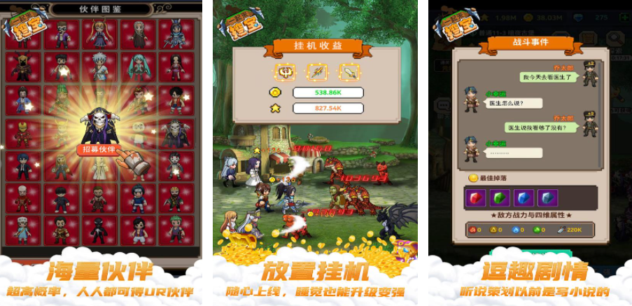 游戲中有很多角色可以選擇,不管是二次元?jiǎng)勇宋?,還是三國(guó)時(shí)代的武將,都可以在這里找到。在豐富的礦場(chǎng)當(dāng)中,有很多價(jià)值高的礦石,還有極品的武器道具,玩家想要獲取這些物品,就要有效的擊殺怪物,還可以尋找伙伴組隊(duì),建立一支最強(qiáng)的挖礦隊(duì)伍,而且可以采用放置掛機(jī)模式,在不上線(xiàn)的情況下也能獲得很多資源。