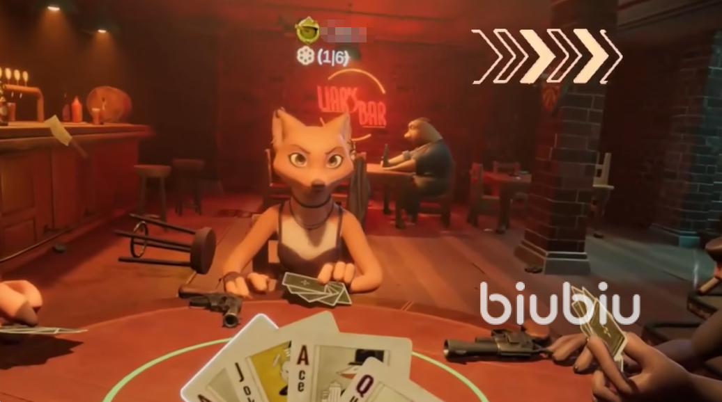 騙子酒吧的故事發(fā)生在一個(gè)陰暗扭曲的酒吧,這里是欺詐者的樂(lè)園,玩家扮演的角色必須通過(guò)謊言和策略擊敗對(duì)手。如果在撒謊期間變卡,那就會(huì)成為對(duì)方的手下敗將,畢竟被發(fā)現(xiàn)后會(huì)被踢出去;這時(shí)可以用上biubiu,加速后才能自然的做出每個(gè)動(dòng)作并發(fā)聲,避免露出馬腳。在打牌的期間還會(huì)投擲骰子,每位玩家搖骰子后隱藏點(diǎn)數(shù)。玩家需要輪流預(yù)測(cè)桌上某點(diǎn)數(shù)的骰子總數(shù),這時(shí)大家可以選擇提高數(shù)量或者點(diǎn)數(shù),若預(yù)測(cè)錯(cuò)誤,預(yù)測(cè)者喝“毒藥”;若正確,質(zhì)疑者喝毒藥。