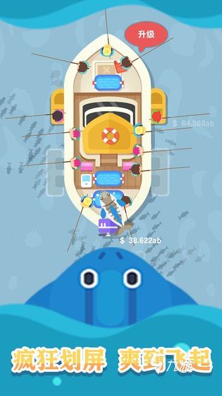 這個游戲不同于普通的釣魚游戲,這個游戲中,玩家駕駛一艘大船并在海洋中撒下一張大網(wǎng)捕魚,而且這艘船還配備了一門大炮,可以擊暈一條鯊魚。