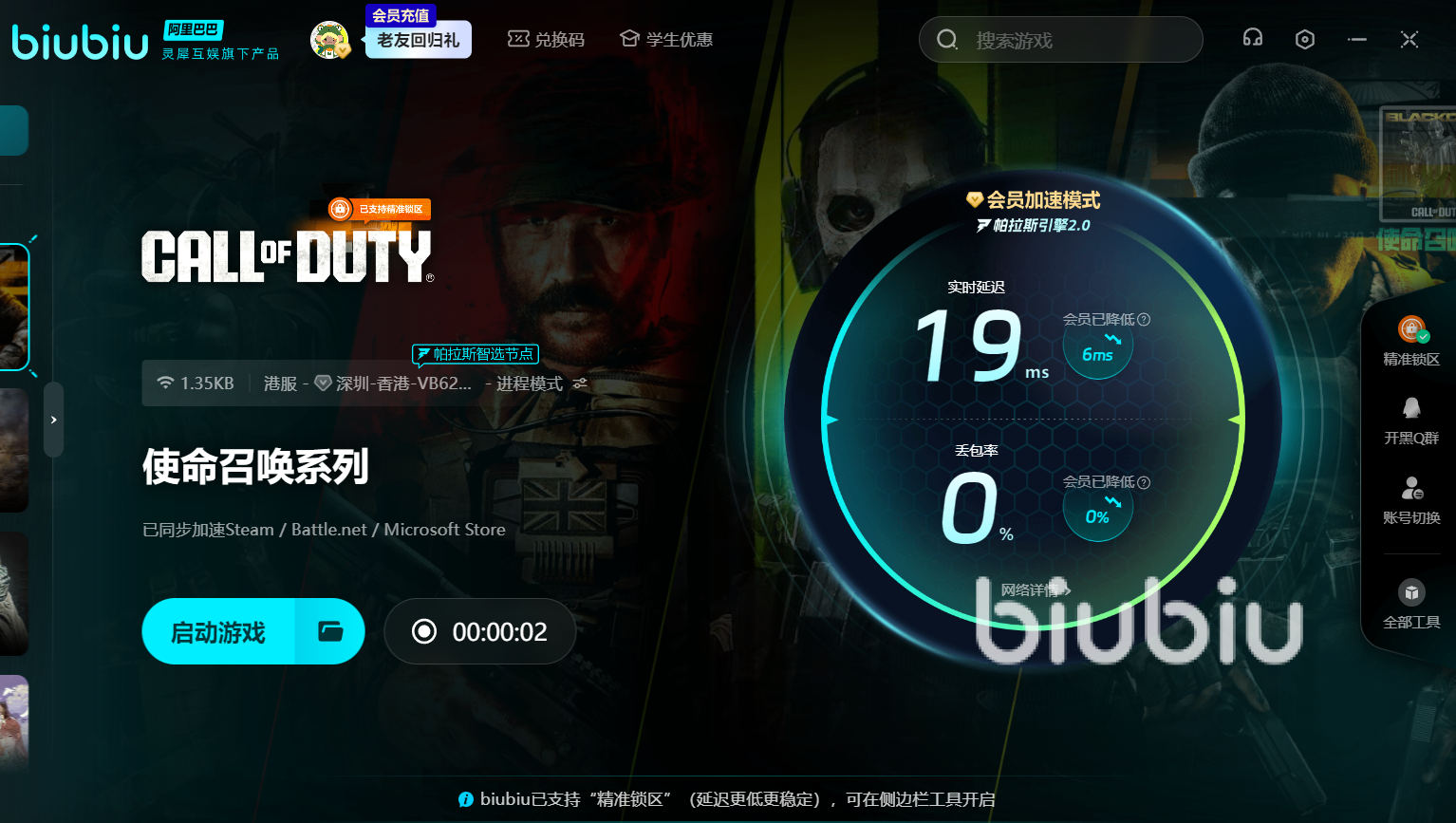 使命召喚系列佳作不斷,biubiu加速器的游戲庫也十分強(qiáng)大,涵蓋系列多款經(jīng)典作品。玩家只需一個(gè)會員賬號,就能自由切換加速,隨時(shí)隨地暢玩整個(gè)使命召喚系列,性價(jià)比很高。