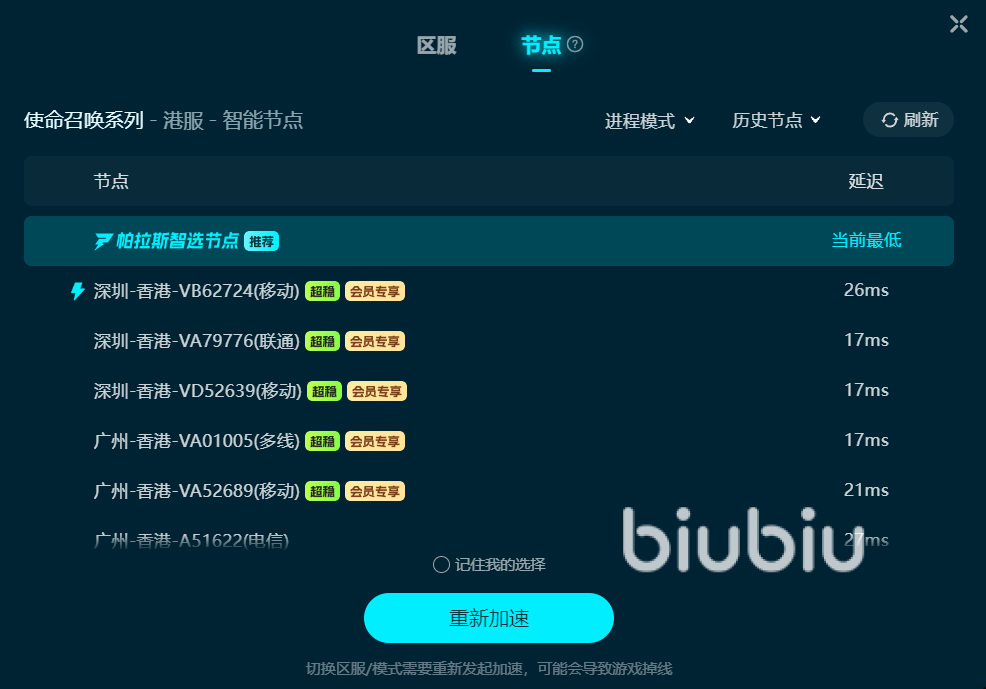 biubiu的帕拉斯引擎2.0加速節(jié)點(diǎn)對本地電腦與游戲服務(wù)器間的網(wǎng)絡(luò)傳輸進(jìn)行深度優(yōu)化,提升傳輸速度與質(zhì)量,為你帶來無可比擬的加速體驗(yàn)。智能節(jié)點(diǎn)推薦系統(tǒng)會依據(jù)你的網(wǎng)絡(luò)實(shí)際情況,自動(dòng)為本地電腦與游戲服務(wù)器匹配最佳節(jié)點(diǎn),徹底省去手動(dòng)選擇的麻煩。極少數(shù)情況下,若因網(wǎng)絡(luò)環(huán)境特殊或游戲特性,導(dǎo)致自動(dòng)匹配的節(jié)點(diǎn)效果欠佳,你還能手動(dòng)切換節(jié)點(diǎn),輕松化解加速難題。