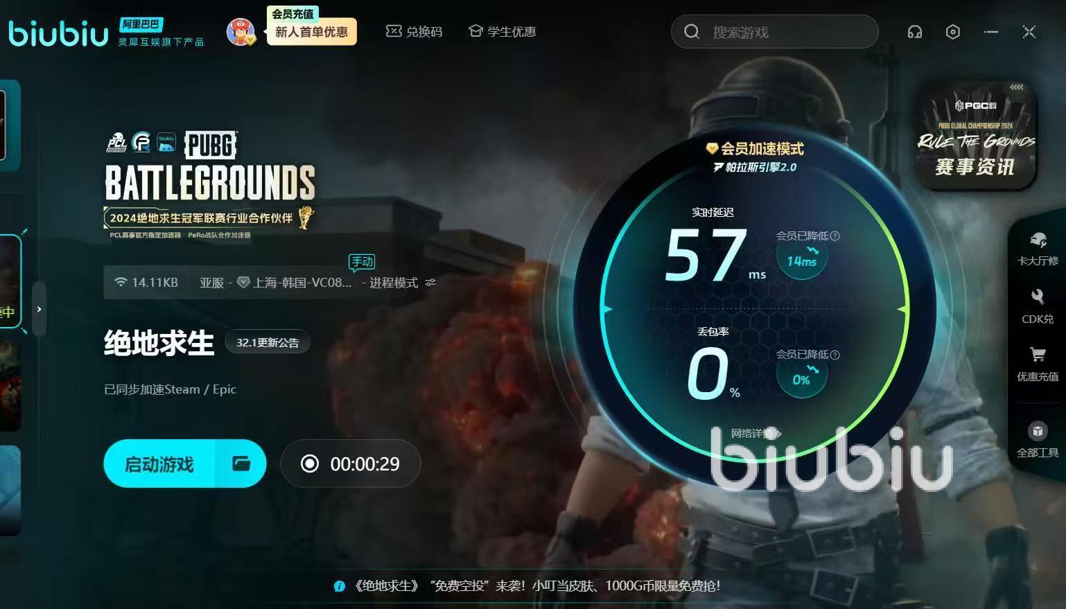 對(duì)于追求高品質(zhì)游戲體驗(yàn)的玩家而言,網(wǎng)絡(luò)的穩(wěn)定性極為重要。biubiu加速器憑借其先進(jìn)的技術(shù)和優(yōu)質(zhì)的服務(wù),向大家提供了可靠的解決方案。新老用戶均可使用【biubiu不掉線】福利碼,領(lǐng)取72小時(shí)會(huì)員額度。此外,新用戶還有24小時(shí)免費(fèi)會(huì)員額度,兩項(xiàng)福利疊加,累計(jì)可享受96小時(shí)時(shí)長(zhǎng)。