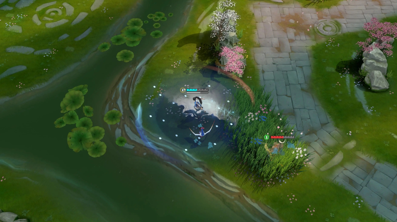 《部落命運(yùn)》最大的特色在于地圖兵線不再有著固定的路線,它們會(huì)因?yàn)楦鞣N因素而改變?cè)燃榷ǖ男羞M(jìn)路線,使得人們能以多種方式來進(jìn)行發(fā)育,任何區(qū)域都可稱之為線上,也直接導(dǎo)致抓人等行為變得特別頻繁,甚至能讓人們整場(chǎng)都在參與團(tuán)戰(zhàn)。當(dāng)然了,游戲的樂趣可不止這些,各位的獲勝目標(biāo)不再是摧毀基地,而是要去爭(zhēng)奪圣壇,只要能將三座圣壇都點(diǎn)亮并堅(jiān)守住足夠久,即可成為贏家。
