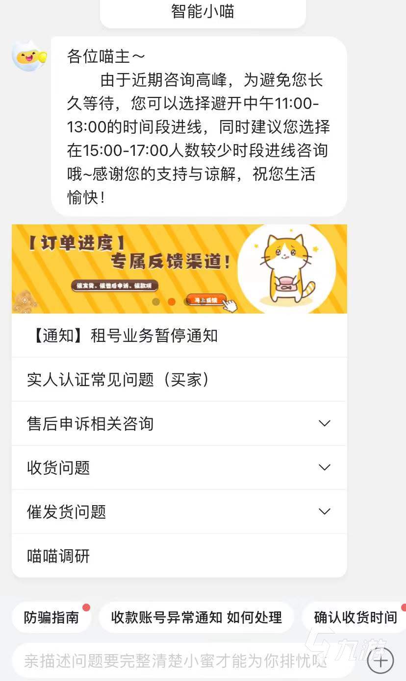 另外,交易貓對(duì)于新手也是非常友好的,在線客服會(huì)實(shí)時(shí)為玩家提供服務(wù),有任何問題都可以直接聯(lián)系客服咨詢,就算是售后出現(xiàn)任何問題了,也可以在這里尋求幫助。