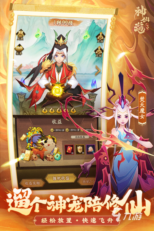《神仙道3》由朝夕光年和飛魚科技,強(qiáng)強(qiáng)聯(lián)手共創(chuàng)的修仙游戲,這部作品依托了眾多神話要素作為了根基,同時還將皮影與巖彩畫風(fēng)進(jìn)行了神之一筆的交合,塑造了一個個奇幻瑰麗的東方大世界,在這兒玩家能夠隨時參與的,令人魂繞夢牽的修仙劇情中,愉躍十足的在無縫世界探索,去抓捕各種靈性十足的神寵。