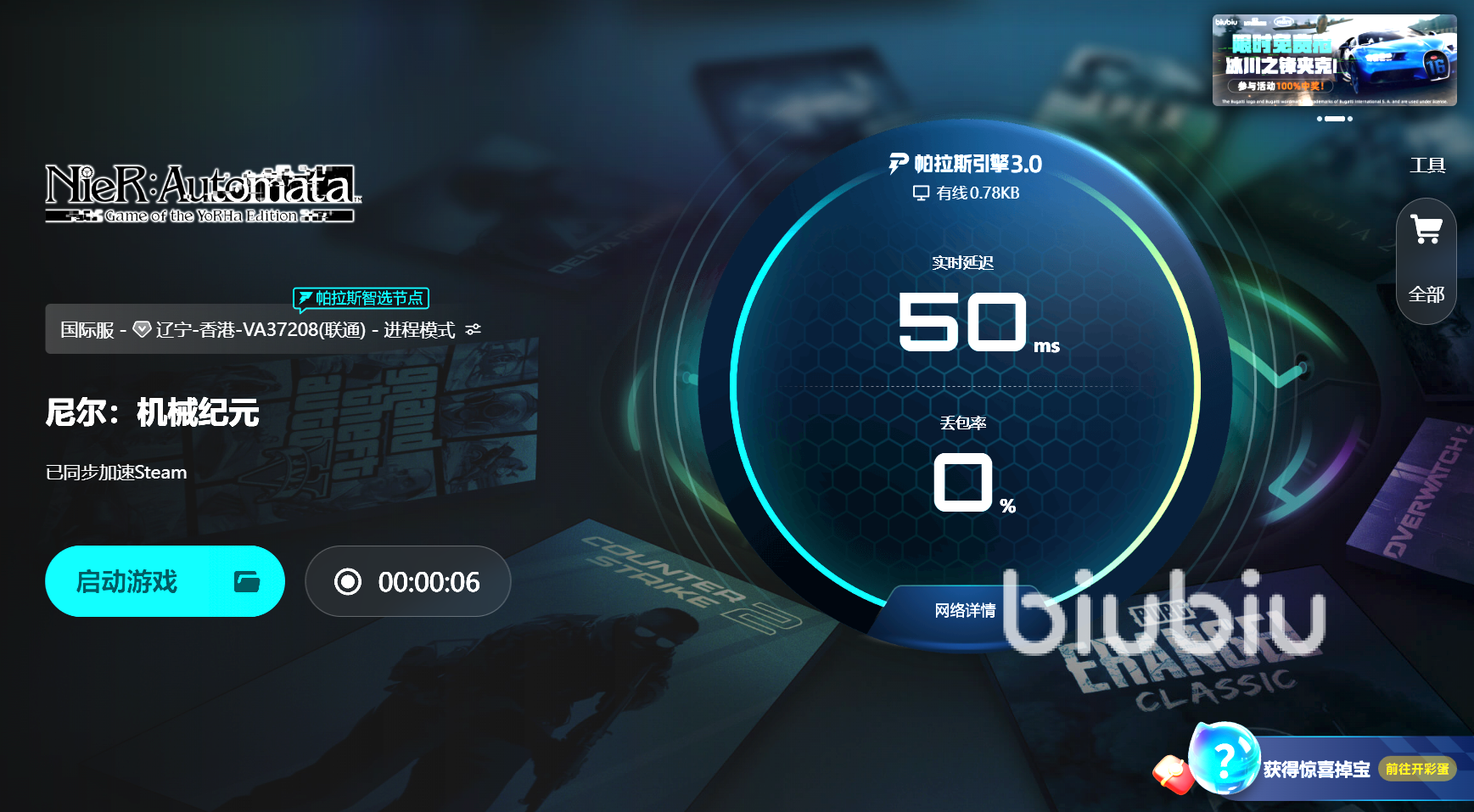 如果你也正在為尼爾機(jī)械紀(jì)元閃退怎么解決而苦惱,不妨在進(jìn)入游戲前先開(kāi)啟biubiu加速器。它能幫助你穩(wěn)定網(wǎng)絡(luò),降低閃退,讓你更專注于游戲劇情的探索和激烈戰(zhàn)斗中,真正享受完整的游戲魅力。