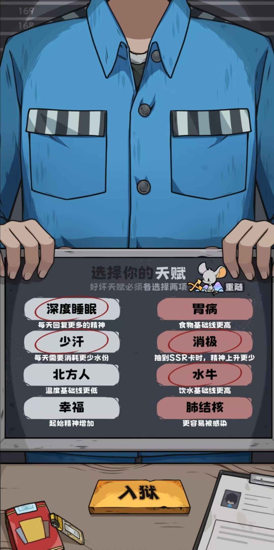 《抽卡監(jiān)獄》玩家將住在一所監(jiān)獄當(dāng)中,可以在這里通過不斷抽卡來生存,擁有的卡牌分了許多的種類,也有不同的稀有程度??梢誀幦〉揭恍┦澄锖退矗€有作戰(zhàn)的武器和能力。游戲內(nèi)的卡片是可以隨時交易的,每個玩家也會自帶不同的天賦,可以不斷的體驗到無限抽卡的樂趣,每次都是隨機(jī)的功能和屬性。每個角色有著五種不同的屬性值,會在游戲內(nèi)不斷的進(jìn)行改變。