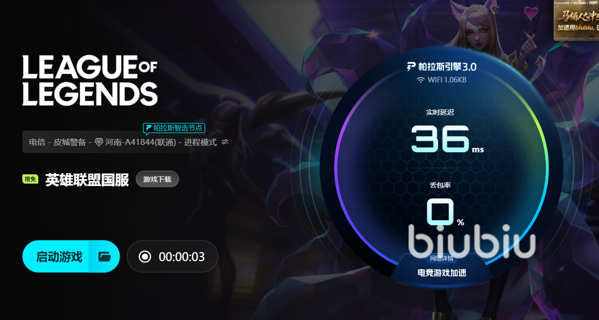 biubiu還包括智能優(yōu)化和實(shí)時(shí)監(jiān)測功能。其引入的帕拉斯引擎3.0可以動態(tài)分析玩家網(wǎng)絡(luò)狀況,預(yù)測潛在異常,并提前啟動數(shù)據(jù)補(bǔ)發(fā)機(jī)制,減少延遲和卡頓。同時(shí),與冠軍選手左梓軒合作,在高并發(fā)戰(zhàn)斗中仍能保證技能釋放和移動指令的即時(shí)響應(yīng)。新用戶獲得24小時(shí)免費(fèi)加速,兌換碼【biubiu不卡頓】兌換72小時(shí),玩國服游戲的話目前可以免費(fèi)使用進(jìn)行加速。