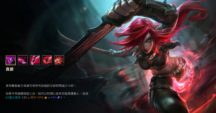 《英雄聯(lián)盟手游》中有一個主打中單的角色,叫做不祥之刃卡特琳娜,這個角色使用的武器就是兩把飛刀,所有的技能都是跟飛刀有關的,第一個技能就是將飛刀投擲出去攻擊敵人,大招就是自身旋轉(zhuǎn)甩出很多把飛刀來攻擊周圍的敵人,屬于一個非常強勢的近戰(zhàn)類法師英雄。