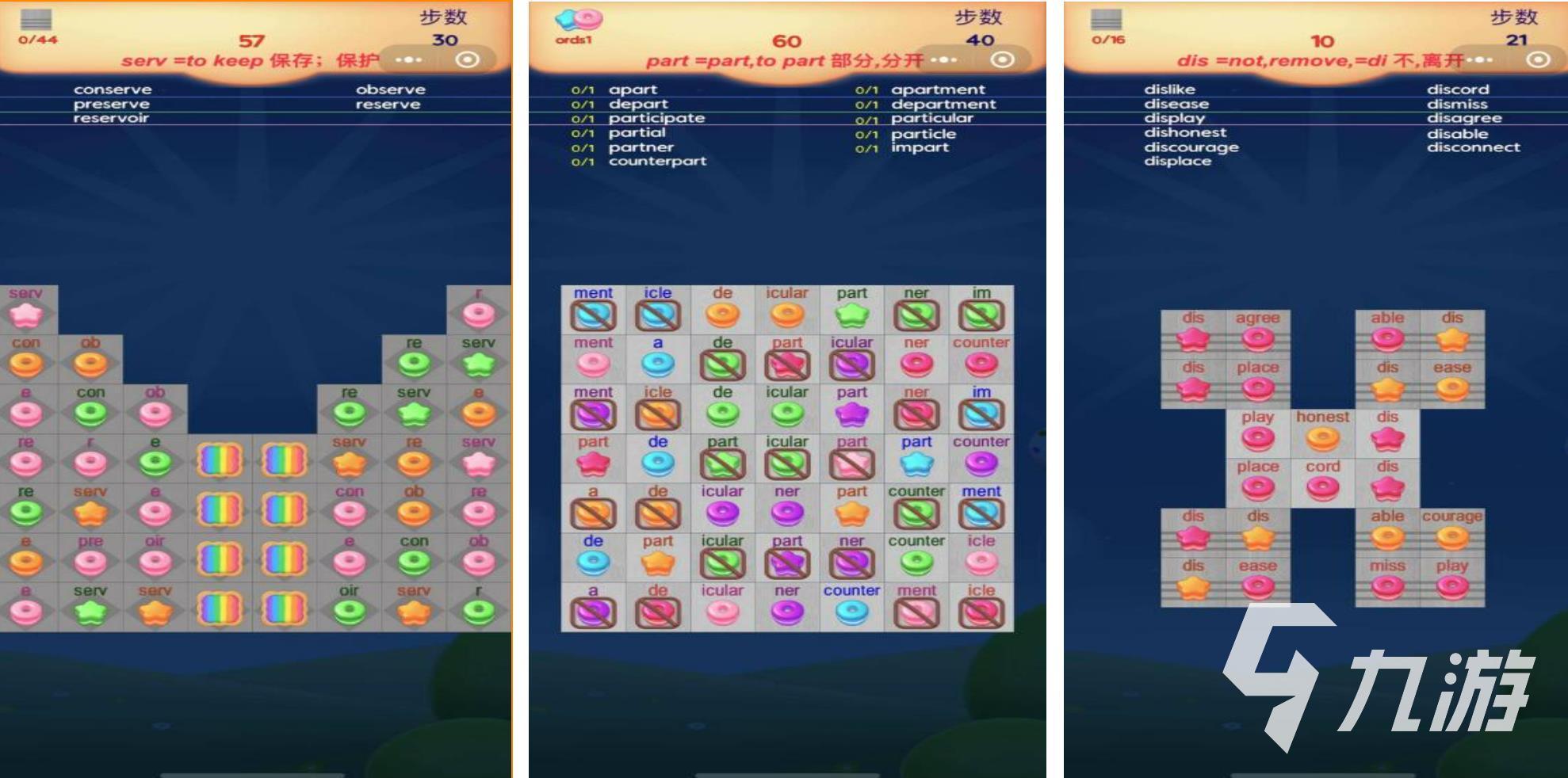 這個游戲的特色之處就是把英語單詞做成了消消樂的方式,玩家在這里面的話主要是通過英語單詞的詞根進(jìn)行組合,從而成為一個完整的單詞,如此一來就可以將它進(jìn)行消除。游戲的界面還是比較整潔的。當(dāng)然,在消除方塊上面也做了一些甜品類的設(shè)計,讓玩家在玩的過程中不會覺得枯燥,也能更好的記住這些單詞。