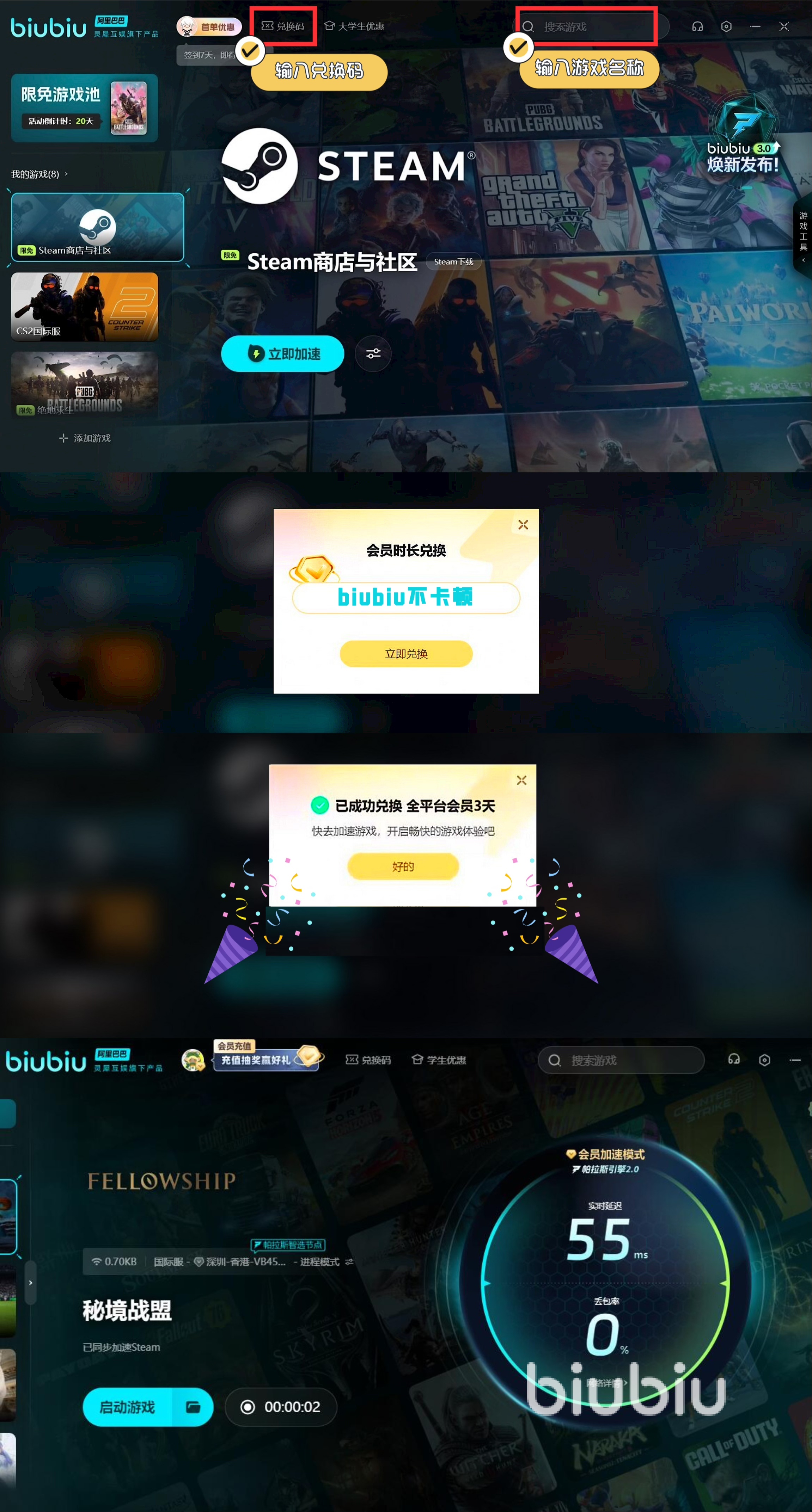 如果你擔心網(wǎng)絡延遲問題的話,那么在開玩前,可以用biubiu加速器去進行專項優(yōu)化,接著就能安心地玩下去了。為了回饋用戶,新用戶現(xiàn)在注冊可獲3小時免費加速服務,而新老用戶使用兌換碼【biubiu不卡頓】可額外領取3天加速時長,學生用戶還可通過學信網(wǎng)認證,享受專屬的折扣,以后就能用低價購買會員了。
