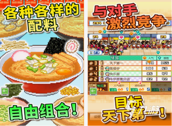 由開羅游戲所打造,可以經營這拉面店的,不僅在像素類型的游戲當中,屬于比較經典的,也是進行了漢化處理的。身為拉面店經營者的你,為了使自己的店鋪,擁有很高的收入,不僅要為了客戶的需求,制作美味的食材。同時還要在完成的拉面,里面添加爽口的蔬菜,甚至是叉燒等,讓客人們絡繹不絕,不斷的擴大店鋪的經營規(guī)模。