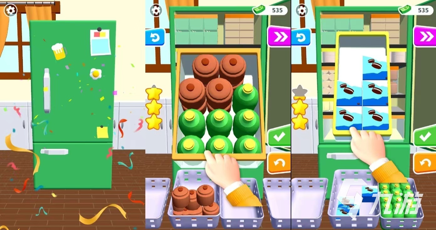 《開心翻不?!愤@個(gè)游戲整體比較解壓和簡單,玩家來到一個(gè)場景中會(huì)發(fā)現(xiàn)有一個(gè)冰箱,需要做的就是把冰箱的物品整理整齊,之后會(huì)獲得一定的獎(jiǎng)勵(lì)。在每一個(gè)關(guān)卡里整理的物品都不同。首先需要玩家把冰箱的物品分一下類,然后按照順序排列整齊,在過程中也要不斷的加快自己的速度,每一關(guān)的冰箱也都有不同的格局,還要區(qū)分冰箱的冷藏和冷凍物品。