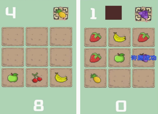 當你置身于這款,以各種各樣的水果,展開對對碰的游戲以后可看到,雖然在每次闖關的時候,只有幾個格子,但是在玩的時候依舊要掌握方法,也是一款以水果展開消除,以對對碰玩法為主的。無論是精美的設計風格還是,其他的地方都進行了提升,給大家全新的游戲體驗。每次順利的完成消除以后,也能幫助你完成許愿。