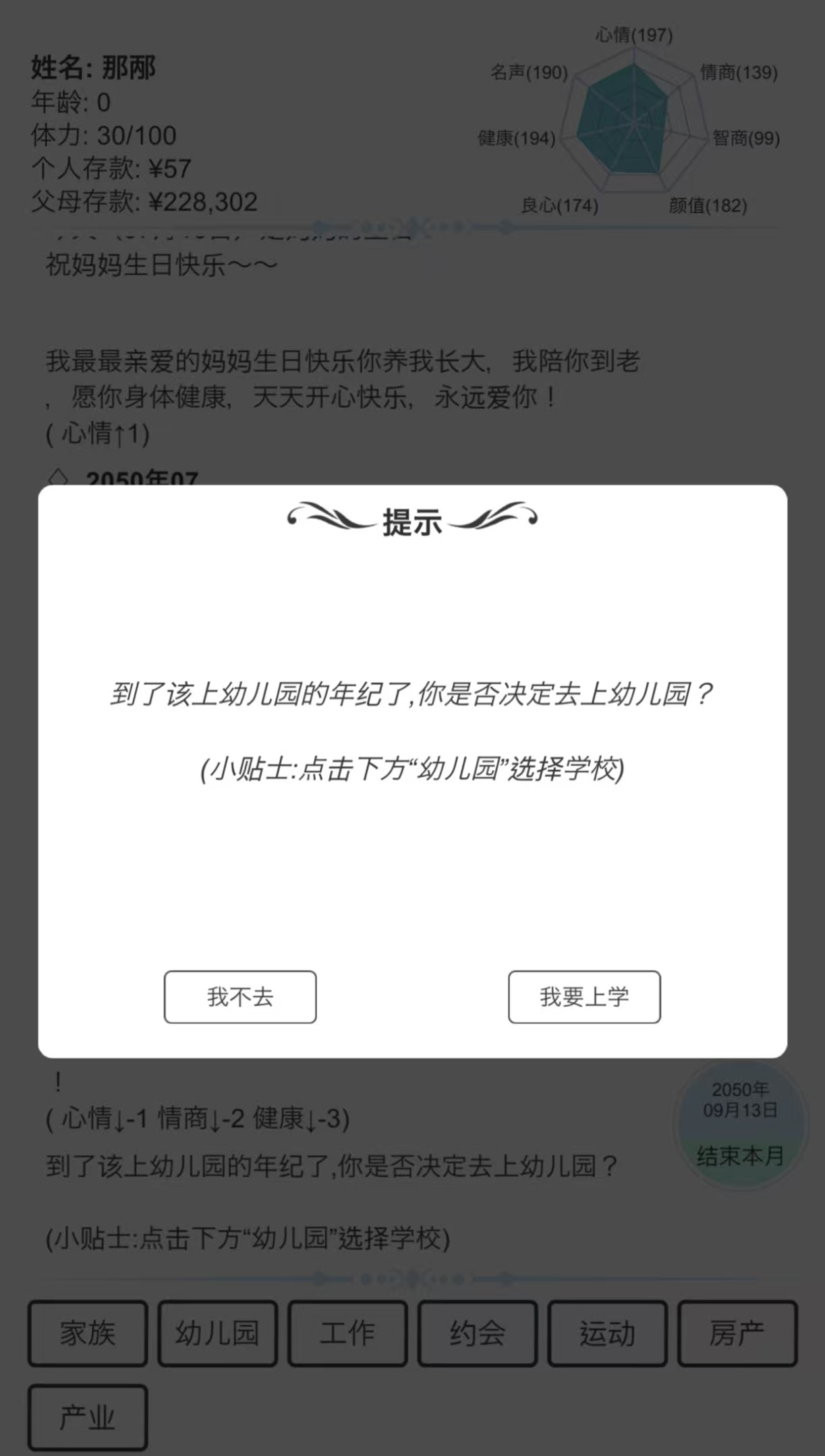 《第二人生》可以對(duì)人生進(jìn)行第二次選擇,會(huì)隨機(jī)發(fā)生很多的趣味的事情,需要從一個(gè)嬰兒開始進(jìn)行。可以選擇不同的教育環(huán)境,可需要從幼兒園開始上學(xué),當(dāng)大學(xué)畢業(yè)后需要找一份工作,能夠選擇不同的職業(yè)和薪資,也可以在游戲內(nèi)進(jìn)行戀愛(ài),買房買車,完成結(jié)婚的人生大事。游戲內(nèi)玩家可以自由的操控,每一個(gè)選擇都會(huì)影響人生的發(fā)展。