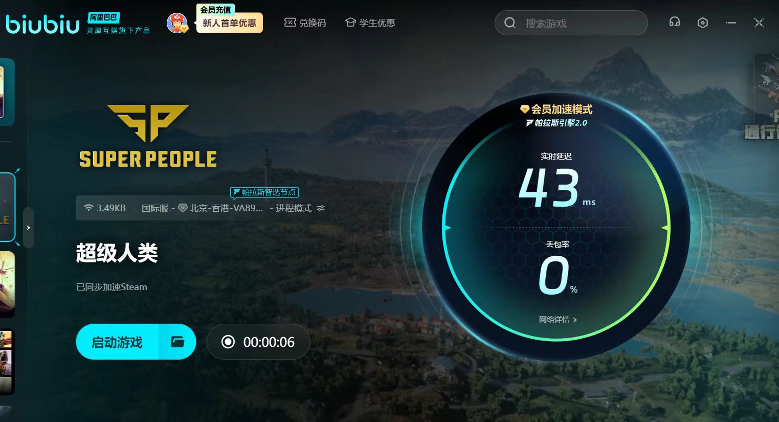 更誘人的是,biubiu為SUPERPEOPLE戰(zhàn)士準備了一連串開服福利,新玩家初次打開APP就能輕松領(lǐng)取24小時免費加速權(quán)限,但這僅僅是開始,在活動期內(nèi)輸入【biubiu不掉線】,立即再解鎖額外72小時高速通道時長,新玩家將這雙重福利疊加使用,可享受總計長達96小時的免費加速體驗,零成本暢享數(shù)天的低延遲核心戰(zhàn)場體驗!