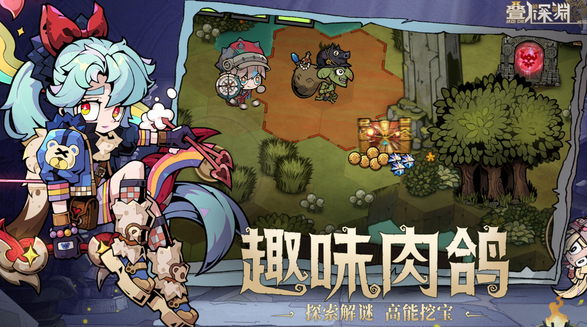疊入深淵是個有著明顯哥特朋克風格的異次元闖關(guān)冒險游戲,趣味性十足的肉鴿闖關(guān)機制與輕度解謎的玩法深入人心,玩家可控制角色滿地圖冒險與各種異次元生物交戰(zhàn),亦可以在地圖各處挖寶獲得隨機的各種獎勵,角色造型呆萌可愛與陰暗詭譎的氛圍刻畫交相呼應,技能屬性都可以疊加強化這一點跟游戲名稱做到了融合。