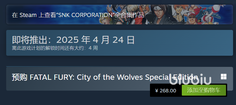 本次國區(qū)steam上架的游戲只有SPECIAL EDITION豪華版,價格為268元直接打包本體+季票1(5個DLC角色分季節(jié)更新),預(yù)購還送特瑞經(jīng)典棒球帽皮膚,預(yù)購?fù)婕疫€能提前3天開肝。情懷黨直接淚目。而且該作還上架了PS5、PS4、Xbox Series X|S和Steam?平臺。