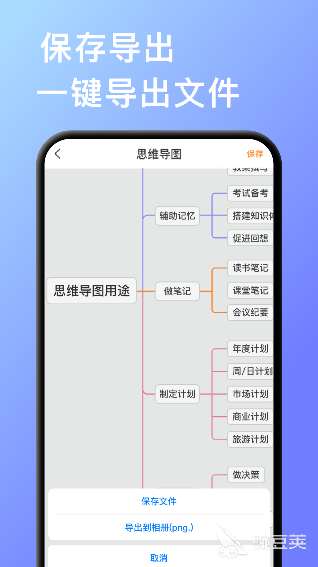 這個(gè)APP內(nèi)的導(dǎo)圖模板海量,并且對(duì)文字部分也是能夠展開(kāi)個(gè)性修改,插入圖片也沒(méi)問(wèn)題哦。制作后能導(dǎo)出為JPG、TXT等多種格式,方便應(yīng)對(duì)不同的格式要求。也有多種排列方式和顏色可選,無(wú)限主題可創(chuàng)建。