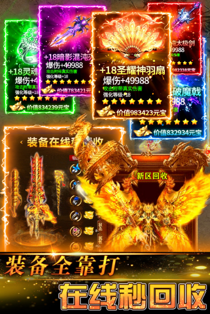 游戲按照傳統(tǒng)設(shè)計了經(jīng)典三技能,玩家可以按照熟悉的打法選擇戰(zhàn)士、法師等職業(yè),通過各種刷怪與攻城暢爽挑戰(zhàn)。在打怪的爆率方面,系統(tǒng)有著絕對公平的戰(zhàn)斗理念,即使一只小怪也有希望爆出神裝,各種裝備能采用合成的方式升級,讓每位玩家收獲爆滿。戰(zhàn)斗支持自由PK,也可組團參與刷boss和萬人同屏,贏取稀有的寵物和資源。