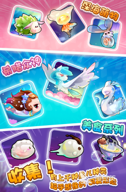 本作是一款以合成為核心機(jī)制的趣味手游,玩家可通過(guò)相同等級(jí)的小魚合并,孵化出更高級(jí)別的品種。圖鑒涵蓋數(shù)百種普通與稀有魚類,從淺海常見生物到深海奇特物種皆可逐級(jí)進(jìn)化。除了養(yǎng)成部分,還能點(diǎn)擊互動(dòng)與小動(dòng)物建立情感聯(lián)系。此外,駕駛幽靈潛艇深入未知海域,探索海底最深處的生命活動(dòng),揭開神秘生態(tài)面紗。