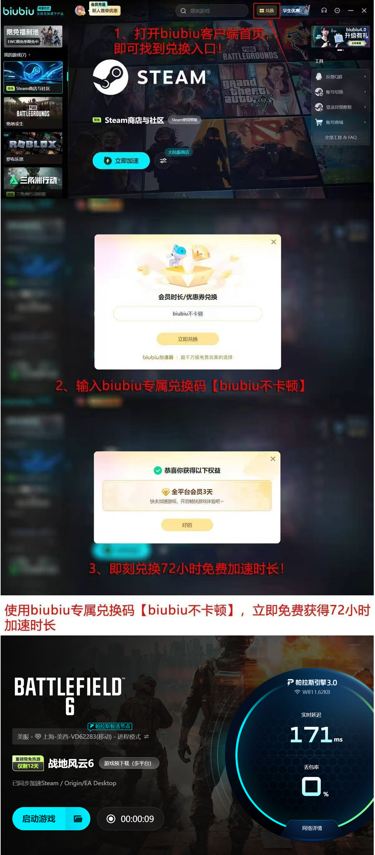 biubiu已經(jīng)蓄勢待發(fā),準(zhǔn)備給大家?guī)硪徊ǔ蹈@瑒e再等了,趕緊注冊個新賬號!首先,作為新手玩家,你將得到24小時專屬的免費加速時長,體驗一下biubiu帶來的流暢游戲感受。不過,別急著馬上開始用這些免費時長,還有一個更大的驚喜等著你——用兌換碼【biubiu不卡頓】可以再領(lǐng)取72小時的額外加速時長!這樣一來,算算時間,你將獲得整整96小時的免費加速服務(wù)。對于剛加入的小伙伴來說,簡直是無門檻福利,能在各種網(wǎng)絡(luò)波動下暢游游戲,實在是太實用了!
