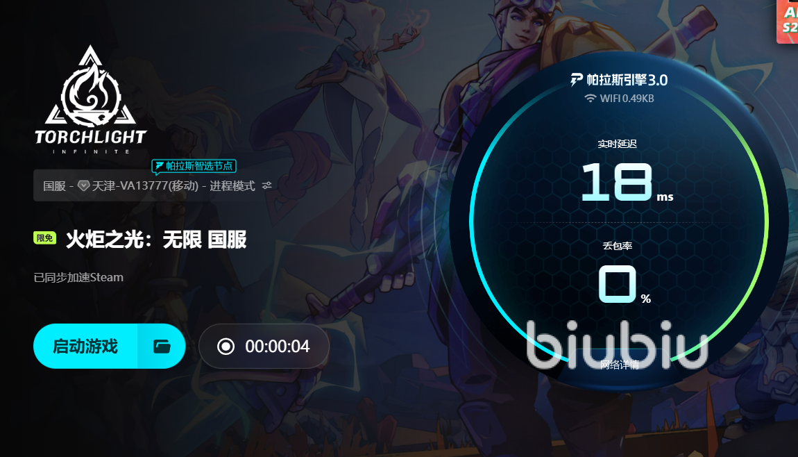 對于受困于登錄難題的玩家,biubiu的免費體驗機制足夠友好。新用戶注冊即可獲得24小時免費加速時長,足夠完成從客戶端驗證到進入副本的全流程測試;輸入專屬口令【biubiu不卡頓】,還能額外兌換72小時時長。操作流程也極為簡便:下載安裝后,在搜索欄輸入“火炬之光”,點擊“開始加速”,系統(tǒng)會自動完成節(jié)點匹配、端口適配等設置,無需手動調整路由器或防火墻。