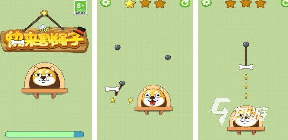 《快來(lái)割繩子》是一款畫(huà)風(fēng)詼諧幽默的休閑益智類(lèi)手游,在游戲中玩家需要通過(guò)滑動(dòng)屏幕來(lái)將其綁定的繩子進(jìn)行割開(kāi)的操作,并且要在保證吃到星星的同時(shí),也讓小狗吃到骨頭哦,游戲的難度會(huì)從一根繩子加到多根繩子,玩家需要仔細(xì)思考骨頭和繩子之間的互相作用力再做出割繩子的決斷哦!