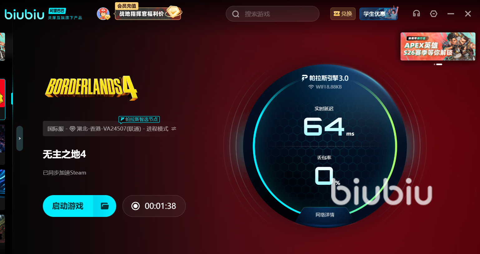 若玩家正沉浸在多人合作的火熱戰(zhàn)斗中,卻頻繁遭遇人物瞬移、技能釋放延遲或莫名閃退,這很可能不是你的技術(shù)問(wèn)題。作為一款強(qiáng)聯(lián)網(wǎng)需求的游戲,無(wú)主之地4尤其在高峰時(shí)段服務(wù)器壓力巨大,網(wǎng)絡(luò)波動(dòng)或不穩(wěn)就成了卡頓的常見(jiàn)病因。針對(duì)此類(lèi)網(wǎng)絡(luò)瓶頸,推薦使用biubiu加速器,搭載帕拉斯3.0引擎,其多鏈路智能路由與弱網(wǎng)環(huán)境強(qiáng)效對(duì)抗技術(shù),能精準(zhǔn)疏通擁堵數(shù)據(jù)流,顯著緩解游戲延遲卡頓問(wèn)題,讓玩家在戰(zhàn)場(chǎng)上行動(dòng)如絲般順滑。