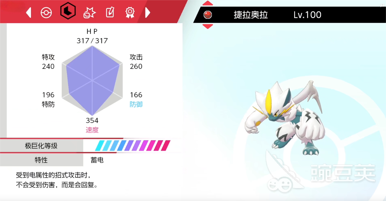 在未進(jìn)行Mega進(jìn)化時(shí),捷拉奧拉最突出的優(yōu)勢(shì)在于速度,擁有143的速度種族值,使其能夠在絕大多數(shù)對(duì)戰(zhàn)中搶占先機(jī),確保技能優(yōu)先釋放。攻擊與特攻均接近100點(diǎn),具備雙本位輸出潛力,即使不依賴Mega也能勝任多種戰(zhàn)術(shù)定位。完成Mega進(jìn)化后,其核心雙攻與速度再次強(qiáng)化,搭配“蓄電”特性,能夠有效應(yīng)對(duì)電系弱點(diǎn),無(wú)論是擔(dān)任主力輸出還是功能性輔助都游刃有余。