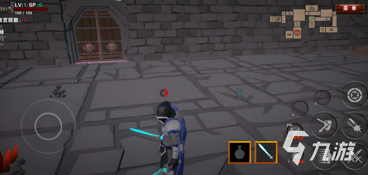 游戲?qū)?chuàng)造一個(gè)幻想的世界內(nèi),玩家將在游戲中充當(dāng)一位勇敢的冒險(xiǎn)家,探索充滿冒險(xiǎn)和未知挑戰(zhàn)的地下迷宮。玩家需要在游戲所給的迷宮中尋找出路,同時(shí)還會(huì)碰到各種難度的怪物,玩家要與之進(jìn)行戰(zhàn)斗,游戲操作很簡(jiǎn)單,玩家只需要點(diǎn)擊滑動(dòng)屏幕來移動(dòng)。玩家也可以在游戲中收集、并造出各種裝備和武器來增強(qiáng)角色的戰(zhàn)斗力。