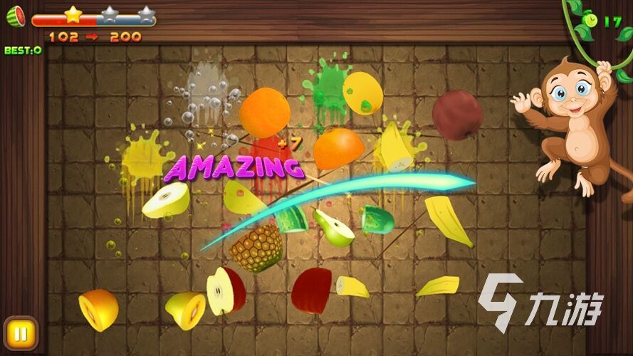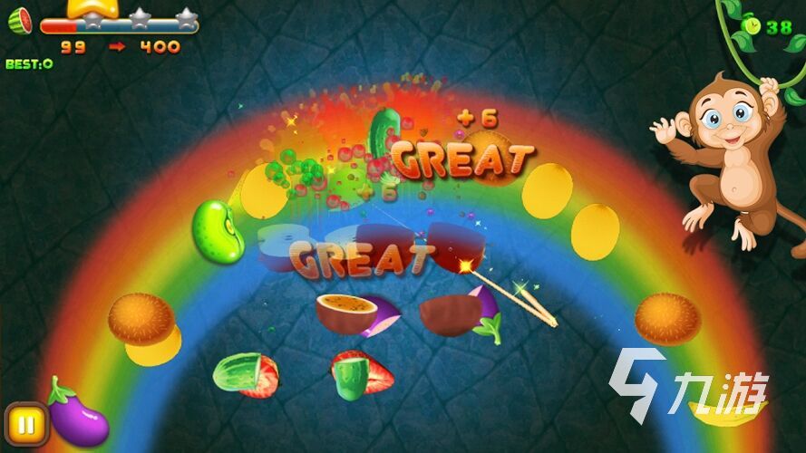 這款游戲的操作上面也是非常簡單的,水果從屏幕的底部飛出,而玩家需要做的就是準(zhǔn)確的找到這些水果,然后用手指將其從中間切開,這就是玩家需要做的主要任務(wù)之一,這樣的話,我們的得分就能夠有所提高,可以說是小朋友玩這款游戲都是得心應(yīng)手的,因此,這款游戲?qū)τ诿刃露砸彩欠浅_m合的,完全沒有一點(diǎn)點(diǎn)門檻,適合小伙伴們閑暇的時(shí)間來進(jìn)行休閑。