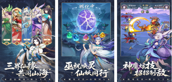獨(dú)特的國(guó)風(fēng)畫面設(shè)計(jì),只不過(guò)將特別經(jīng)典的三消玩法融入進(jìn)去,當(dāng)大家每次在消除時(shí)就可觸發(fā)相應(yīng)的指令,還可讓其中的英雄釋放出炫酷技能和山海異獸展開(kāi)熱血戰(zhàn)斗。其中的英雄類型特別豐富,在每次戰(zhàn)斗時(shí)都可同時(shí)操控三位英雄釋放出連招的組合效果,可加入到速推或者是持久戰(zhàn)中。