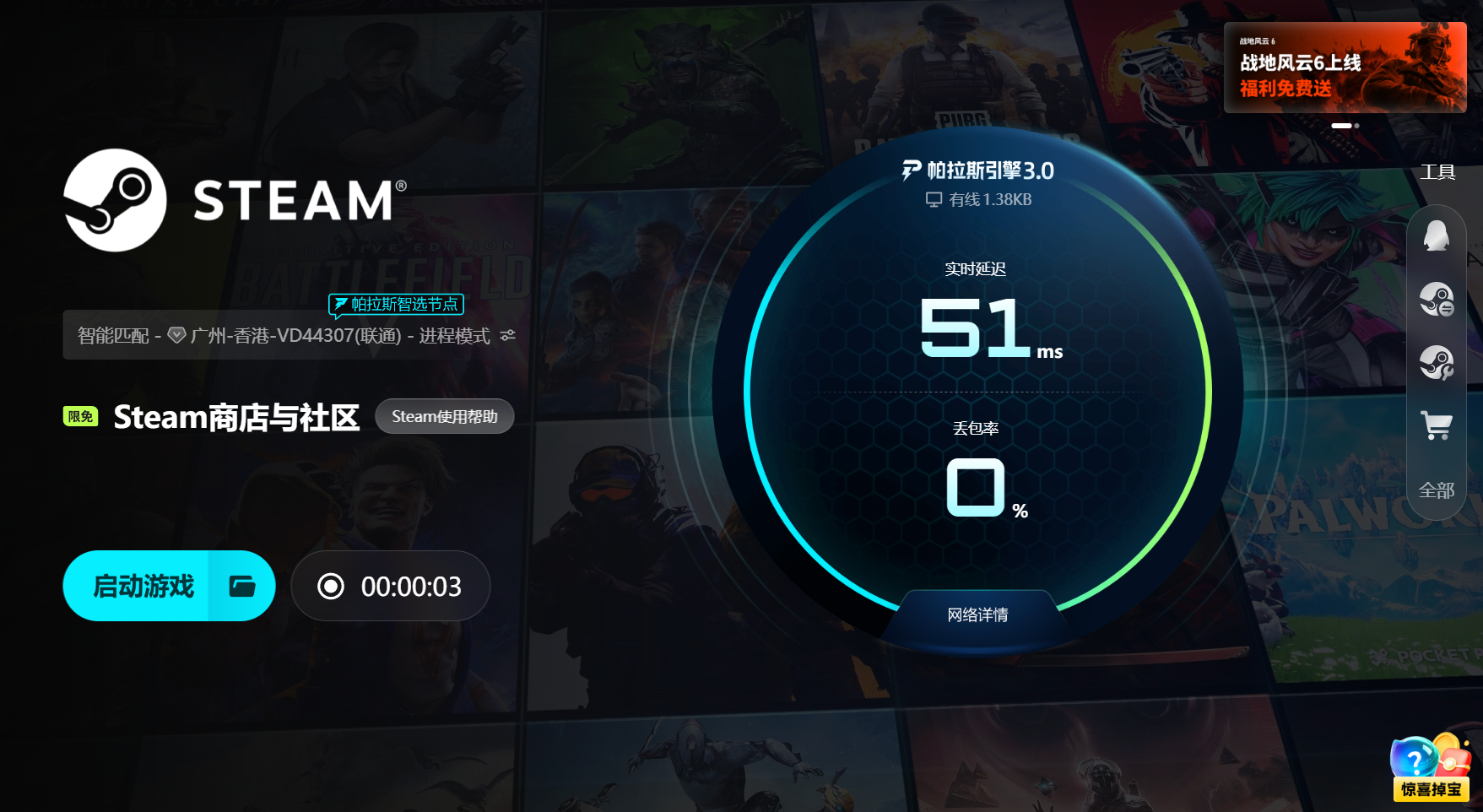Steam不僅僅是游戲平臺(tái),更是玩家的據(jù)點(diǎn)。閃退不僅打斷游戲,還切斷了與好友的連接與社區(qū)的交流。biubiu加速器讓這一切重新回到穩(wěn)定的節(jié)奏,讓平臺(tái)再次成為順暢可靠的入口。當(dāng)界面穩(wěn)定展開(kāi),當(dāng)商店加載出熟悉的折扣標(biāo)簽,當(dāng)好友邀請(qǐng)順利彈出,那種久違的安心感就回來(lái)了。游戲世界的大門(mén)重新打開(kāi),不再被網(wǎng)絡(luò)阻擋。